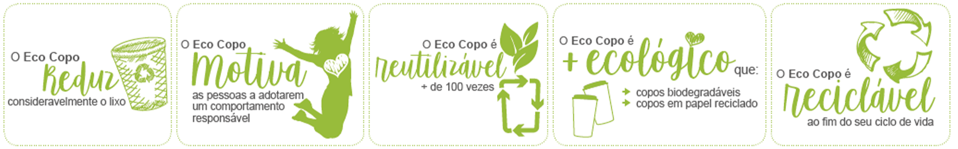 A missão da Eco Copo é promover um consumo sustentável e ambientalmente responsável, comercializando copos reutilizáveis para todo o tipo de eventos!